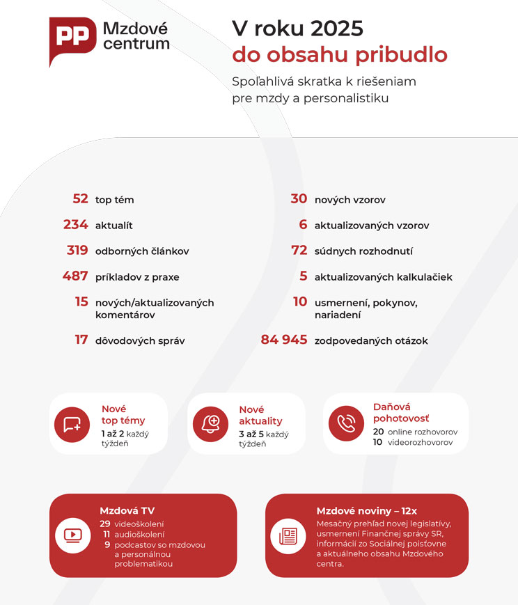 - Mzdové noviny - zasielanie mesačného prehľadu s najdôležitejšími novinkami z Mzdového centra